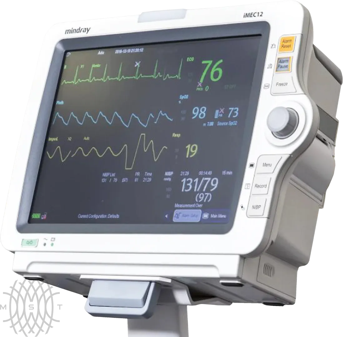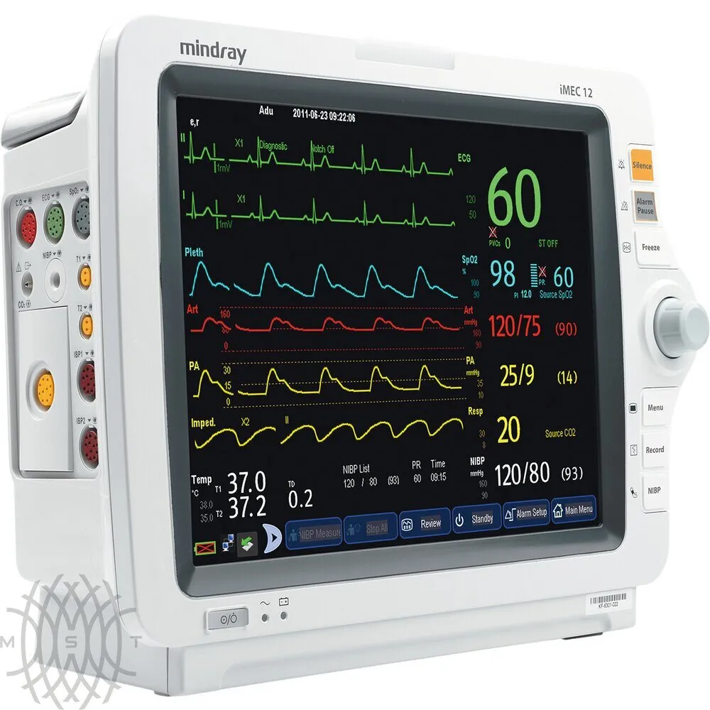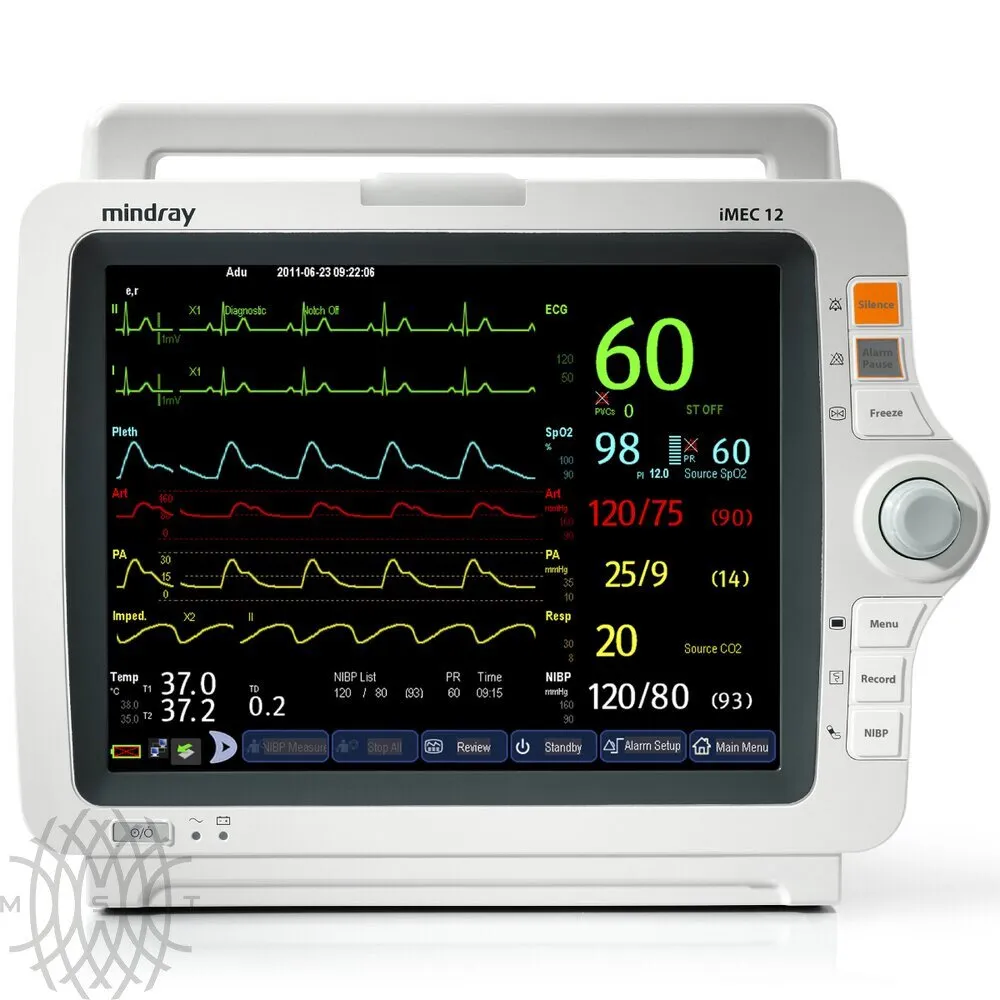 Mindray iMEC 12 —  монитор пациента, предназначенный для операционных, отделений кардиологии, реанимации и палат интенсивной терапии. Он отслеживает и предоставляет информацию о жизненно важных показателях больного. Модель подходит для всех категорий пациентов: взрослых, детей, новорожденных. Прибор моментально реагирует на изменение состояния больного и информирует об этом больничный персонал.