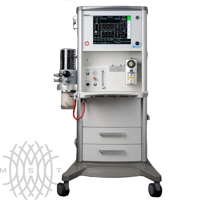Philips Siesta i TS Наркозно-дыхательный аппарат оснащен электронным смесителем газов, встроенным аккумулятором на случай отключения питания, аспиратором. При каждом включении запускается автоматическое самотестирование.