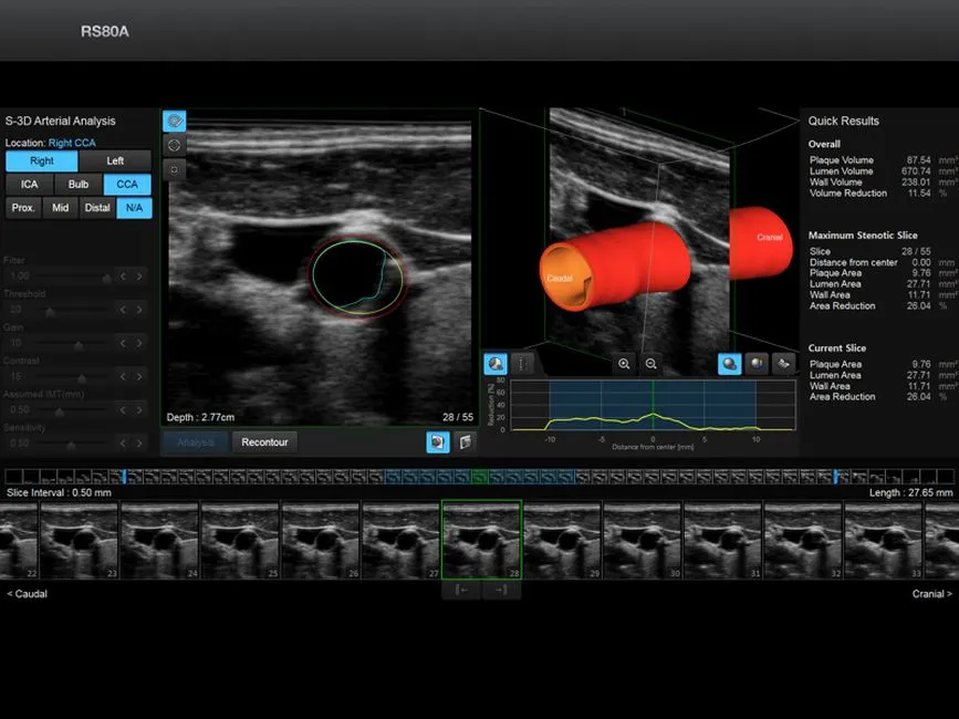 • S-3D Arterial Analysis - программа позволяющая провести автоматические измерения толщины стенки сонной артерии в объеме с последующей обработкой и различными режимами визуализации