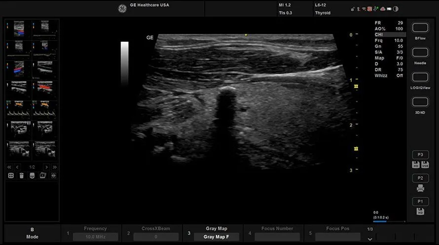 • LOGIQ View  Режим панорамного сканирования с возможностью проведения измерений